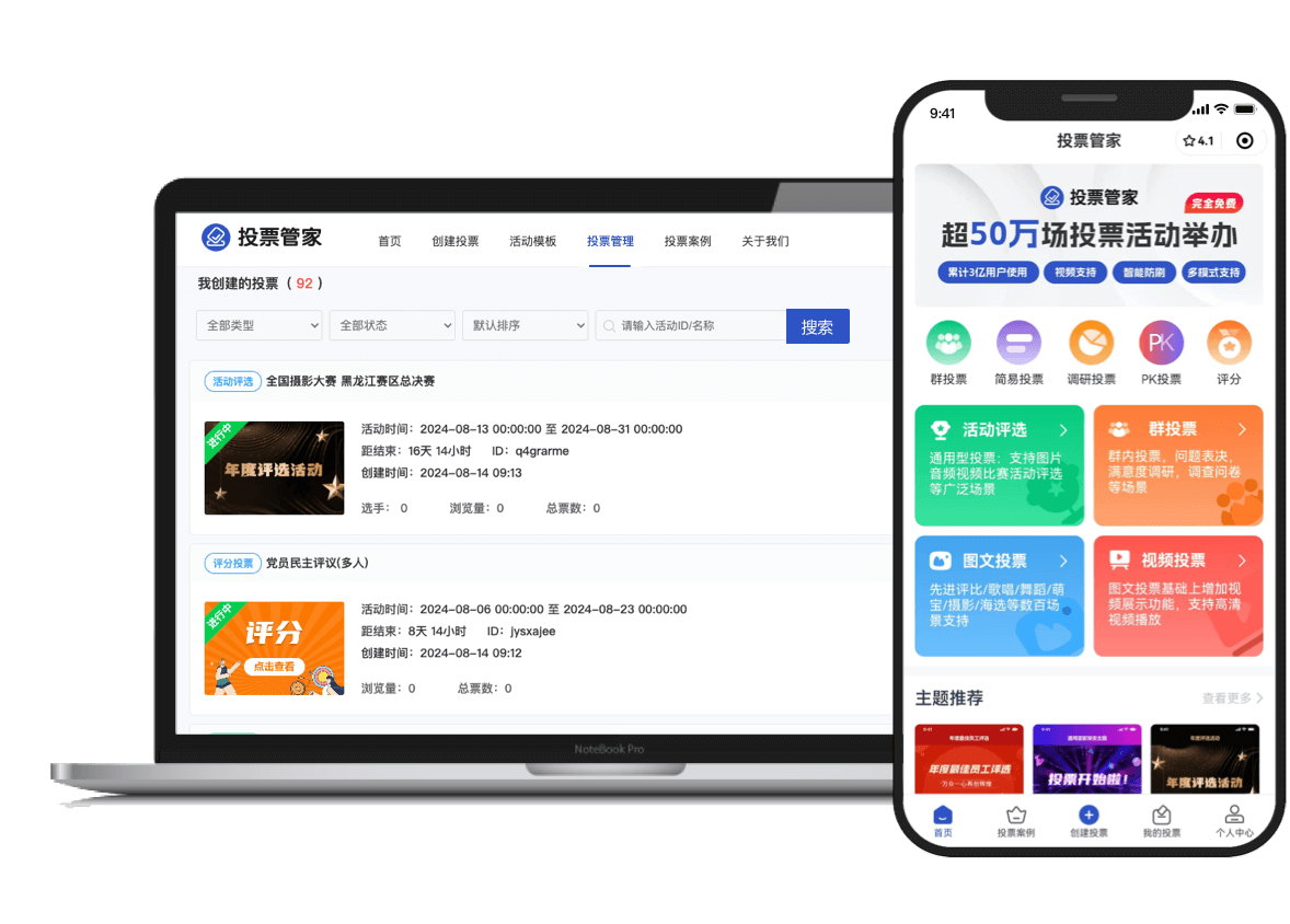 微信端小程序和电脑均可管理投票项目