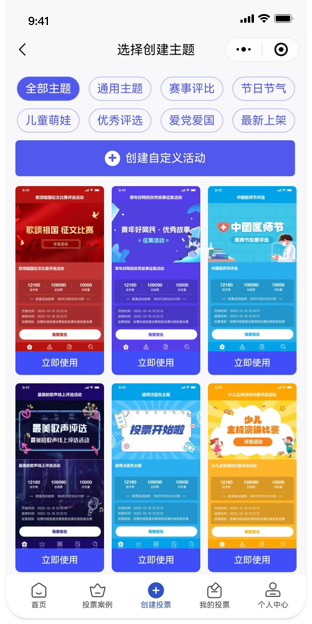 满足99%的投票发起场景,支持多种模板主题,多种样式功能